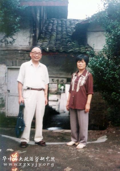 我和我的夫人何允湘在国立十二中旧址纪念碑旁