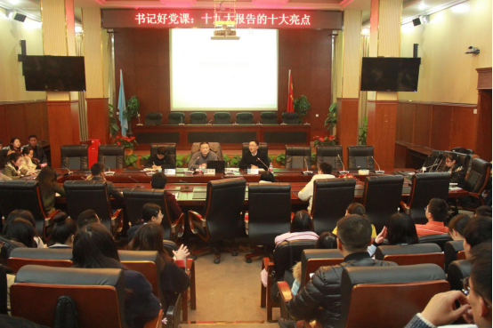 (通讯员:贾尚栩)为更好地贯彻十九大会议精神,深入学习十九大报告内容12月1日下午两点半,我院“书记好党课暨学习十九大精神专题报告会”在模拟联合国会议室举行。本次报告的主讲人是我院党委书记段维教授,团委书记冯连军老师担任主持人,我院本科生辅导员孙延松老师、全体党员和58期入党积极分子到场聆听学习。