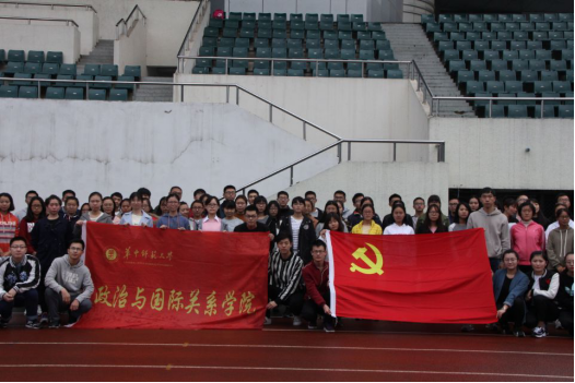 早晨六点半,2017级全体研究生、本科生一起来到了佑铭体育场,大家排好整齐的方队等待活动的开始。学生会主席谭松涛倡议此次“喜迎十九大,跟着党旗跑”活动要跑出政国风采,展示华师精神。随后由2017级研究生赖鸿同学手执党旗,在学生团委副书记孙浩冉的组织下,大家喊着嘹亮的口号,迈着统一的步伐,跟着党旗奔跑。