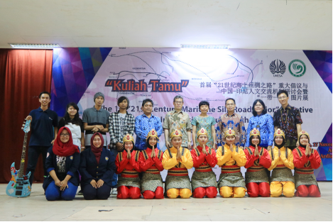 华中师范大学中印尼人文交流研究中心主任韦红教授为大家带来了题为《“一带一路”背景下中国-印尼人文交流新机遇》的精彩讲座。讲座开始前,印尼泗水国立大学校长瓦尔索诺(Warsono)及语言与艺术学院院长、中文系主任等会见了韦红教授。讲座伊始,印尼泗水国立大学的中文系学生与老师们齐声唱响了印度尼西亚共和国国歌和中华人民共和国国歌,接着印尼泗水国立大学孔子学院的学生们表演了传统的萨满舞。接着,中国驻泗水总领事馆彭怿牧副总领事致辞,阐述了推动中印尼人文交流的意义,对华中师范大学中印尼人文交流研究中心交流团的到访表示欢迎。韦红教授的讲座首先强调了促进人文交流在“一带一路”建设中的重要性。其次介绍了中国印尼人文交流,包括教育、体育、文化艺术、医疗等方面的交流与合作。最后提出了推动中印尼人文交流进一步发展的一些思路,包括推动数字科技领域合作,共建网络丝绸之路;加深两国卫生领域合作,共建健康丝绸之路;推动两国环保领域合作,共建绿色丝绸之路;及进一步推动练过青年交流,共建青年丝绸之路。在讲座互动环节,印尼学生们对中国及高速发展表现出了极大的兴趣,并一再咨询如何能到中国留学。对于这些问题,韦红教授都一一作了回答。讲座在阵阵掌声中圆满结束。