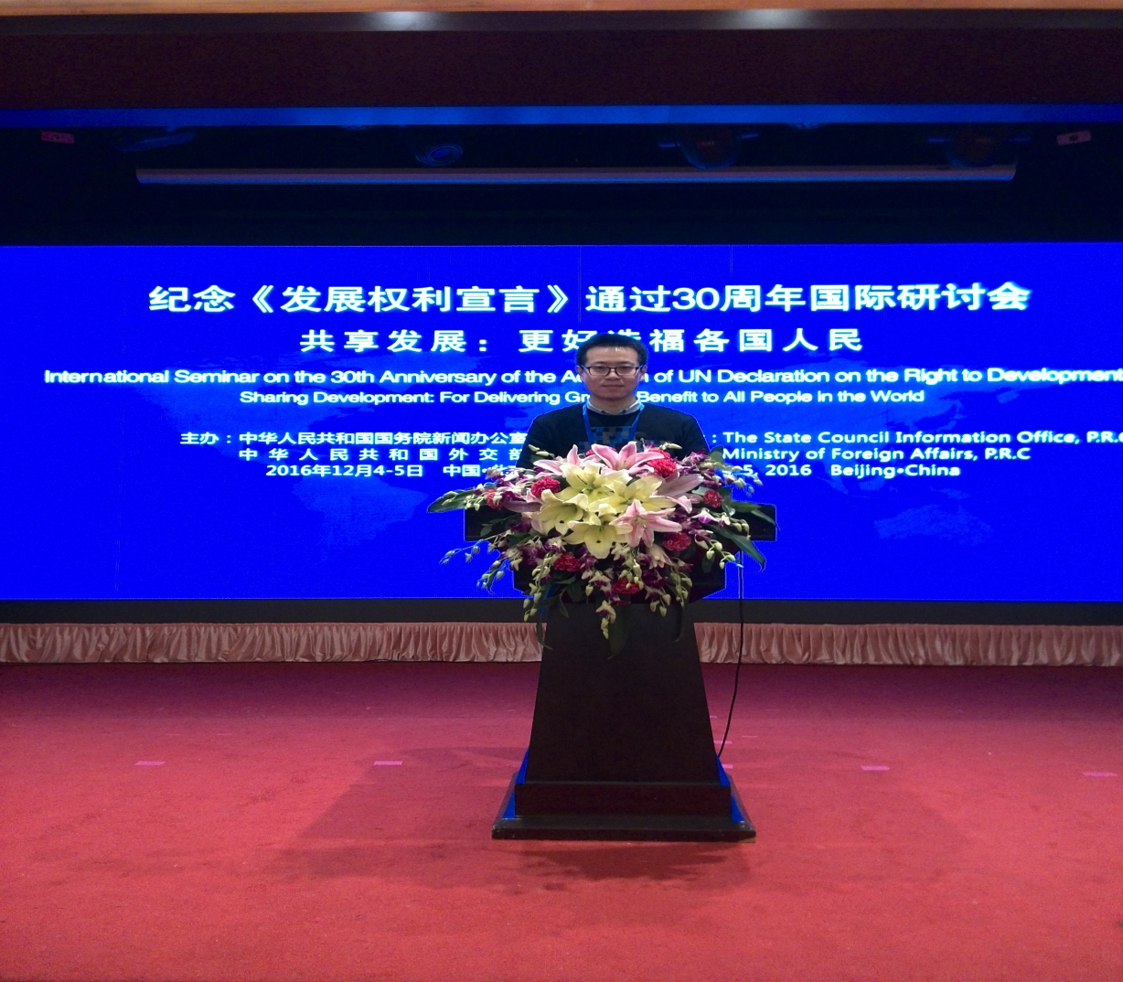 政治与国际关系学院教师张弦博士作为华中地区高校代表受邀参与本次会议,并宣读了题为《国家人权行动计划(2016-2020)与发展权的实现》的会议论文。文章认为,在纪念联合国《发展权利宣言》通过30周年之际,中国政府对外发布了新一期《国家人权行动计划(2016-2020年)》,这是一件有重大意义的历史性事件。通过全面对接联合国“可持续发展目标”(SDGs)、强调国际交流与合作以及突出工商业与人权保护,新一期《国家人权行动计划》有力地促进了均衡、共同以及负责任的发展,从而推动发展权的进一步实现。同时,新一期《国家人权行动计划》的发布,充分彰显了中国作为负责任大国积极主动参与全球治理、创造互利共赢政经新秩序的立场和愿景。张弦博士的发言得到了与会者的积极评价和高度肯定。