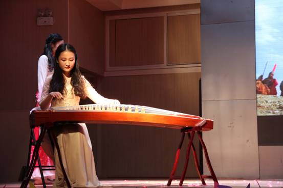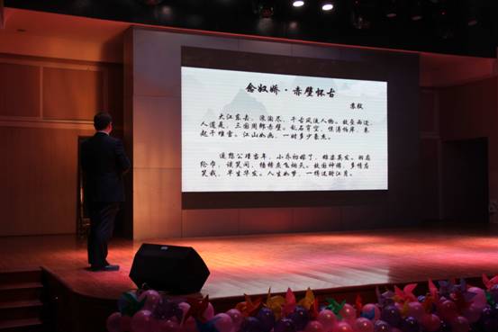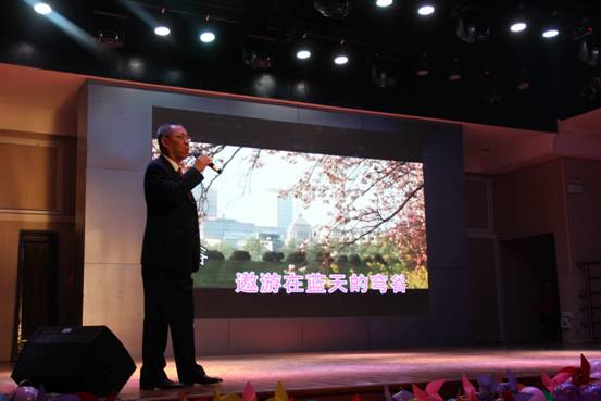 在一组歌曲串烧之后,段维书记上台致辞,并饱含深情地朗诵了《七律·登庐山》《念奴娇·赤壁怀古》两首诗词,经过接下来的唐鸣院长的介绍,大家才知道段书记原来是一位著名诗人。唐鸣院长为大家深情地演唱了一首《天边》,专业的唱功、唯美的唱腔引得了全场响起雷鸣般的掌声,两位老师惊艳的表演把晚会推向了高潮。