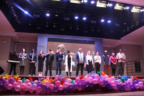 在张弦老师和留学生们一首《A La Volonté du Peuple》之后,唐鸣院长带领师生高唱一首《国际歌》,不同的语言、不同的国家共唱一段旋律、阐释一个主题,嘹亮的歌声响彻会场,全场再次沸腾,又一次掀起高潮。