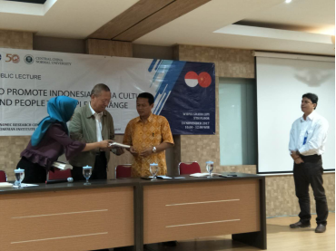 2017年11月14日,在28365365打不开唐鸣院长的带领下,教育部备案中心“中印尼人文交流研究中心”成员韦红(主任)、宋秀琚(副主任)、赵长峰和王勇辉到访印尼科学院,并与印尼科学院学者们进行了学术交流。学术交流伊始,唐鸣院长与印尼科学院负责人各自介绍了本院的发展情况,并交换了礼物。接着,中印尼人文交流研究中心4位成员分别做了学术报告。