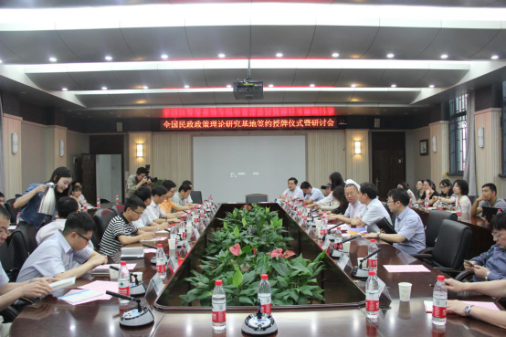 (通讯员 李梦兰)6月26日上午,全国民政政策理论研究基地签约授牌仪式暨研讨会在我校行政楼一楼会议室召开。民政部政策研究中心主任王杰秀、办公室主任柴一凡、科研处副研究员于建明,我校党委书记马敏、副校长彭南生以及学校办、宣传部、人事处、科研部等各职能部门负责人出席会议,政治学研究院、信息管理学院、社会学院、公共管理学院、经济与工商管理学院、法学院的领导以及相关师生代表参加会议。签约授牌仪式由彭南生副校长主持。