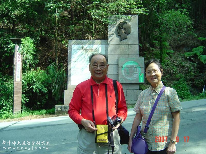 我和我的夫人何允湘在国立十二中旧址纪念碑旁