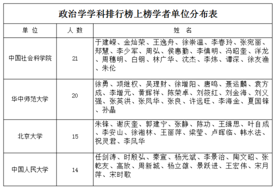 1)中国哲学社会科学政治学排行榜最有影响力学者分学科排行榜分析报告:基于中文论文的研究(2017版)网址:http://evaluation.chd.edu.cn/info/1003/1287.htm?from=singlemessage