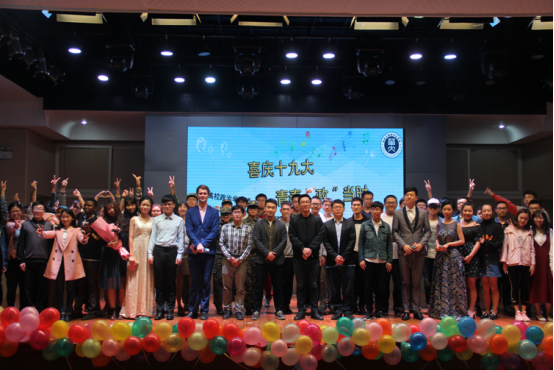 注:图为“喜庆十九大·青春政当时”——第五届高校青年政治学联盟暨2017年政治与国际关系学院联欢会现场演员、工作人员、与会代表合影