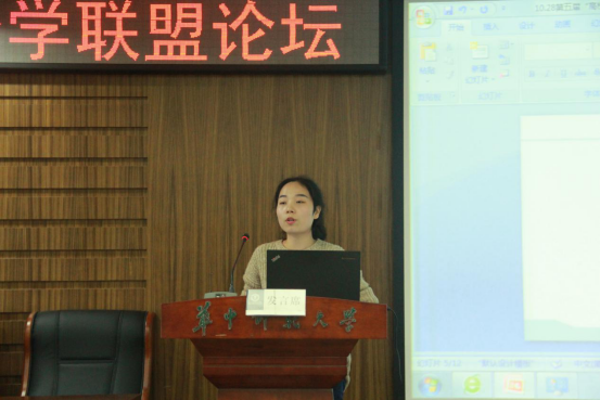 麻旎代表共青团华中师范大学委员会致开幕辞。麻书记指出,高校青年政治学联盟组织有力、主题鲜明、形式多样,是一个非常好的学术平台、交流窗口,不仅为全国的青年政治学研究者提供了一个交流、学习、进步的平台,同时也是华师青年学子与全国青年学习交流的窗口,借此平台,全国青年政治学研究者可以在学术思维的碰撞中打破思维定式,提升学术素养,促进彼此友谊。尤其是本次论坛增加了思想政治教育专题研讨环节,对坚持社会主义办学方向,加强高校思想政治工作队伍建设,推动高校共青团工作改革,以及帮助青年学子树立正确的世界观、人生观、价值观,为实现中华民族伟大复兴的中国梦培养合格的建设者和接班人具有很好的引领作用。她表示,共青团华中师范大学委员会始终引领青年、关心青年、支持青年、帮助青年,愿与全国各高校一起推动青年成长,引领青年进步。