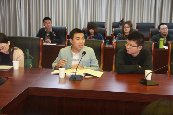注:图为华中科技大学社会学院的博士研究生刘杰进行专题汇报