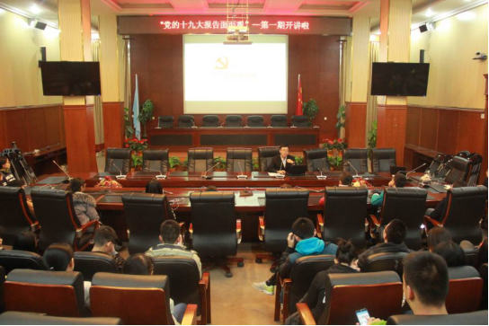 (通讯员:王洁)11月19日晚七点半,政治与国际关系学院特色晚点名系列活动之“党的十九大报告面面观”正式开讲啦。本次活动由国际政治专业郑泓韬、高峰两位同学主讲,就党的十九大报告进行解读,并提出自己的见解。