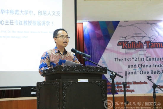 (通讯员 叶帆)11月19日,首届“21世纪海上丝绸之路”重大倡议与中国-印尼人文交流机制研讨会在印度尼西亚泗水国立大学举行。本次会议由泗水国立大学孔子学院和华中师范大学中国-印尼人文交流研究中心主办,泗水国立大学和中国驻泗水总领事馆协办。中国驻泗水副总领事彭怿牧出席开幕式并致辞。