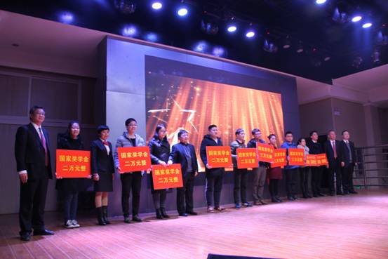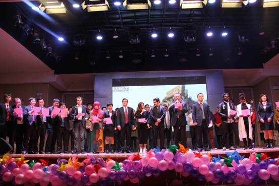 晚七点整,伴随着大屏幕上震撼的倒计时,晚会在全场热烈的掌声中拉开帷幕。聚光灯下,来自世界不同国家的留学生,身穿中国传统服饰为大家献上一首象征吉祥、红火的《恭喜发财》,高亢的歌声、欢快的舞步瞬间引爆全场,赢得大家阵阵掌声与欢呼。接下来晚会举行了国家奖学金、高原奖学金颁奖典礼,院领导给获奖同学颁奖,并合影留念。