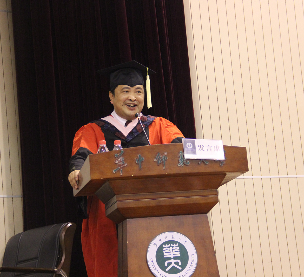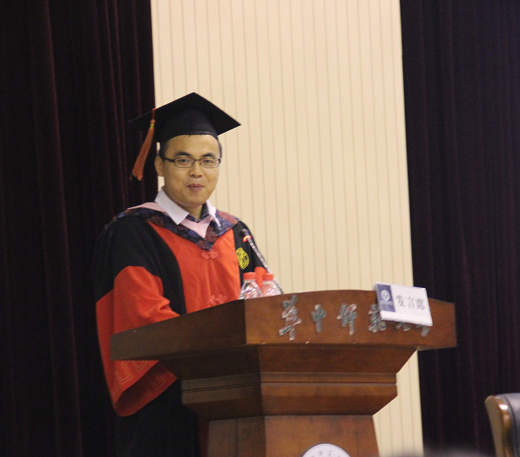 毕业生代表何光强同学诉说了对母校的感恩之情,对老师、同学的感谢之情,他承诺:未来将胸怀天下,脚踏实地,不忘初心,砥砺前行。留学生代表Chulanee(楚拉妮)用汉语向老师们致以谢意。在校生代表吴志虎同学向师兄师姐们表达了热烈的祝贺与衷心的感谢。来自华南师范大学政治与行政学院刘志鹏副教授返回母校,为毕业生送上祝福。他追忆了与华师的故事,“1996年我进入华师求学,2000年攻读了唐鸣院长的硕士,2003年前往华南师范大学工作,作为华师校友,桂子山烙印到我们每个人的内心深处,我很自豪我是华师的毕业生。”