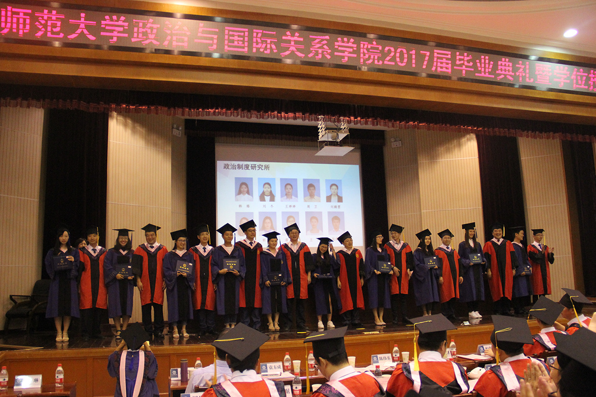我院院长唐鸣教授介绍了毕业生的基本情况,“今年我院一共有165名毕业生,国内毕业生中有博士9人,硕士124人,外国留学生中,博士8人,硕士24人,同学们毕业后奔赴全球各地、全国各地,可以说我们的院友遍天下,同学们的毕业去向有各级各类党政部门、科研机构、公司企业等等。”同时唐鸣院长提出希冀:“人生是长跑,只要足够努力,不懈怠、不放弃,就会取得或大或小的辉煌成绩,祝福大家。”接下来,我院党委书记段维教授宣读关于表彰王瀚等11名优秀毕业生的文件,副院长韦红教授宣读关于表彰优秀学位论文的文件。我院领导为获奖代表颁奖。