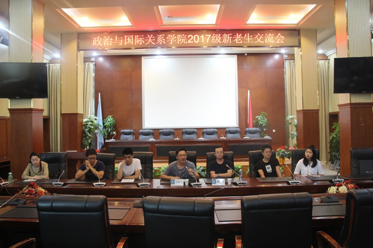 (通讯员:张祥)为帮助我院2017级研究生新生尽快适应新的生活,尽快融入新的环境,尽快展开新的学习,9月12日下午,我院在模拟联合国实验室举行了2017级研究生新老生交流会,院党政办公室主任、研究生辅导员潘广炜,院团委书记、研究生辅导员冯连军,2017级全体硕士研究生,2016级、2015级部分研究生代表出席此次交流会,会议由冯连军主持。