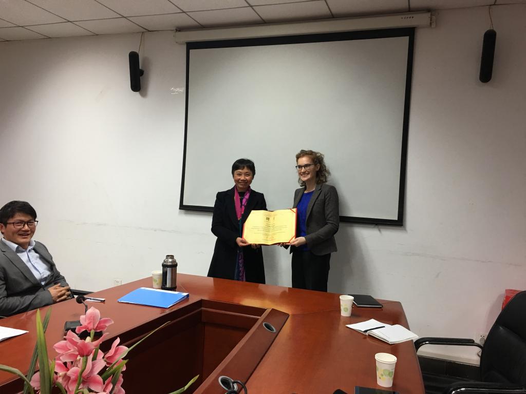 12月11日下午,荷兰乌特勒支大学学者Julie Fraser女士到访中心。中心成员与她初步洽谈了合作意向。首先,中心主任韦红教授向Julie Fraser女士介绍了中心情况和发展规划;接着,中心各成员宋秀琚、赵长峰、王勇辉和刘明周分别介绍了自己的研究兴趣所在。Julie Fraser女士对中心取得的成绩表示钦佩,并愿意在印尼社会文化研究等方面与中心加强学术交流,增进合作。最后,韦红主任代表中心给Julie Fraser女士颁发了兼职研究员聘书。